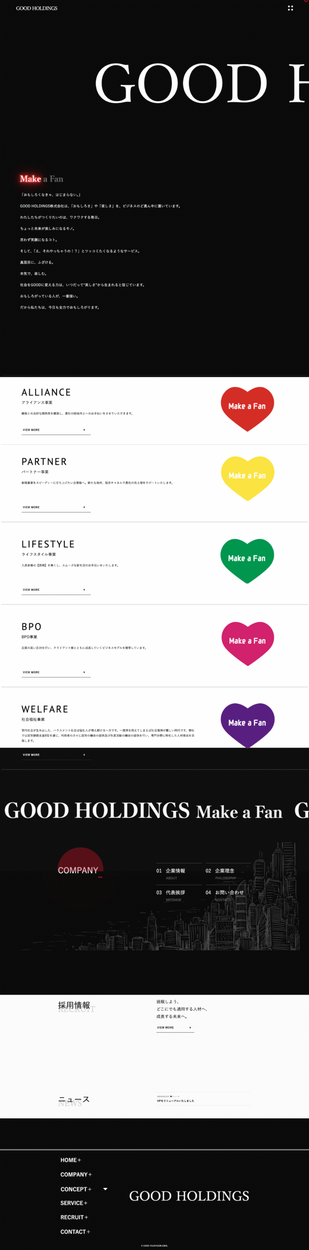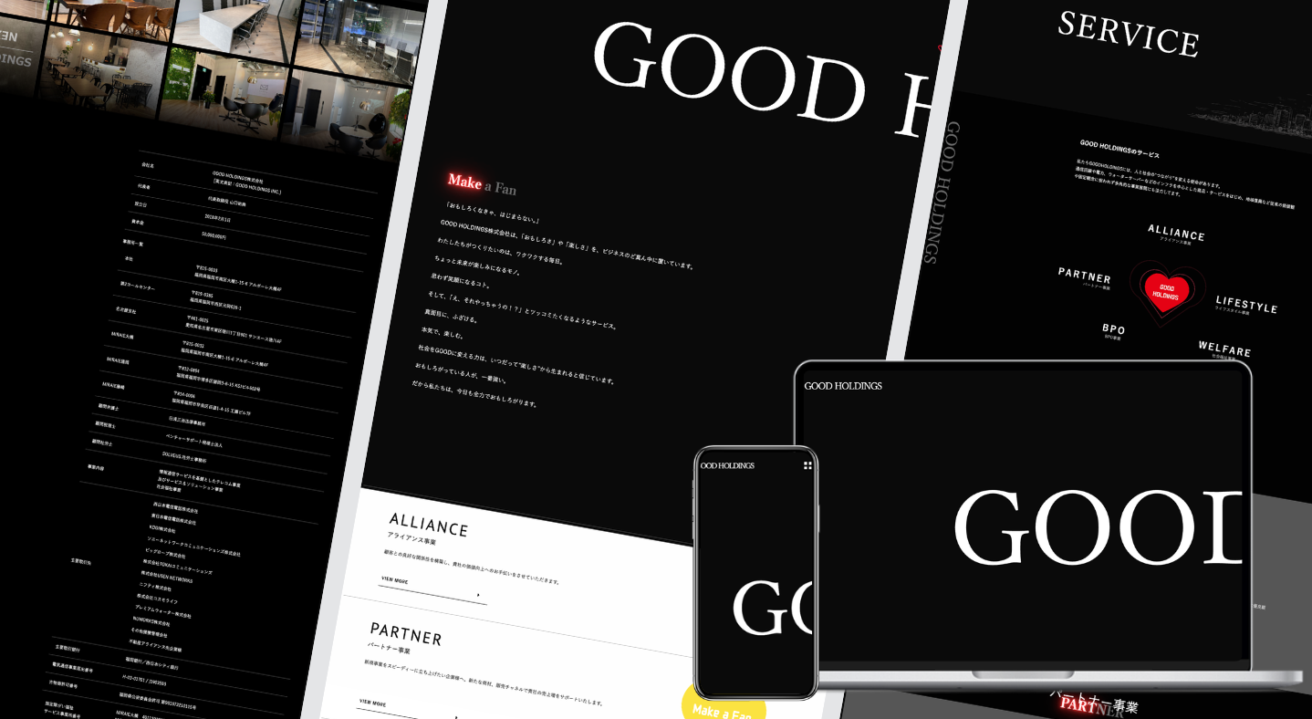 GOOD HOLDINGS株式会社様 2025 8/01 HP制作 コーポレート 2025年12月7日社名GOOD HOLDINGS株式会社URLhttps://good-holdings.co.jp状況リニューアルドメイン設定サーバー設定WordPressフォームプログラムHTMLCSSJavaScript HP制作 コーポレート URLをコピーする URLをコピーしました! URLをコピーしました! つながるモバイル株式会社様 MIRAIE 関連記事 合同会社ワンステップエデュケーション様 2025年11月26日 株式会社Good Innovation 2025年11月26日 株式会社Good Works 2025年10月24日 株式会社M’s food様 2025年9月30日 MIRAIE 2025年9月30日 つながるモバイル株式会社様 2025年7月18日 インフィニア光様 2025年7月1日 ⼀般社団法⼈ジャパングローバルハラル認証機構様 2025年2月15日